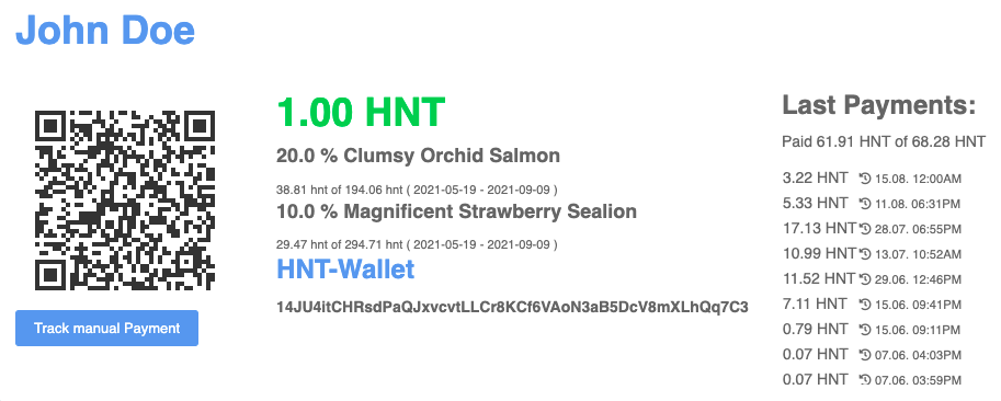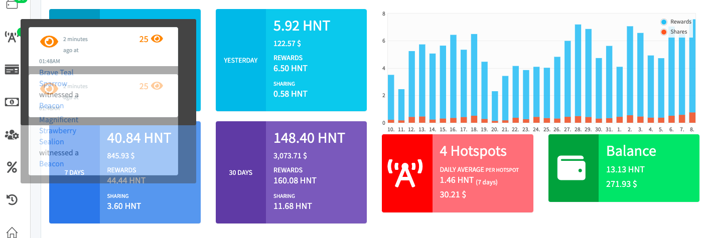 Yesterday, we tracked mining rewards of 17,211.95 $HNT with a market value of 31,325.75 USD